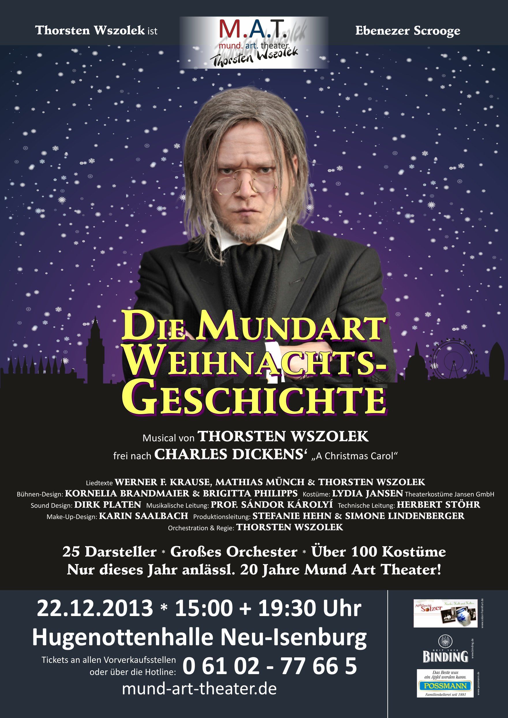 Was sonst außer DIE MUNDART WEIHNACHTSGESCHICHTE soll wohl zum 4. Advent anlässlich 20 Jahre Mund Art Theater laufen? So dachten wir es uns, und so dachte es sich das Publikum und bescherte uns zwei ausverkaufte Vorstellungen. Unter den Zuschauern sind etliche, die das Musical auf der Basis von Charles Dickens' "A Christmas Carol" seit 1997 jedes Jahr gesehen haben, wann immer es aufgeführt wurde.