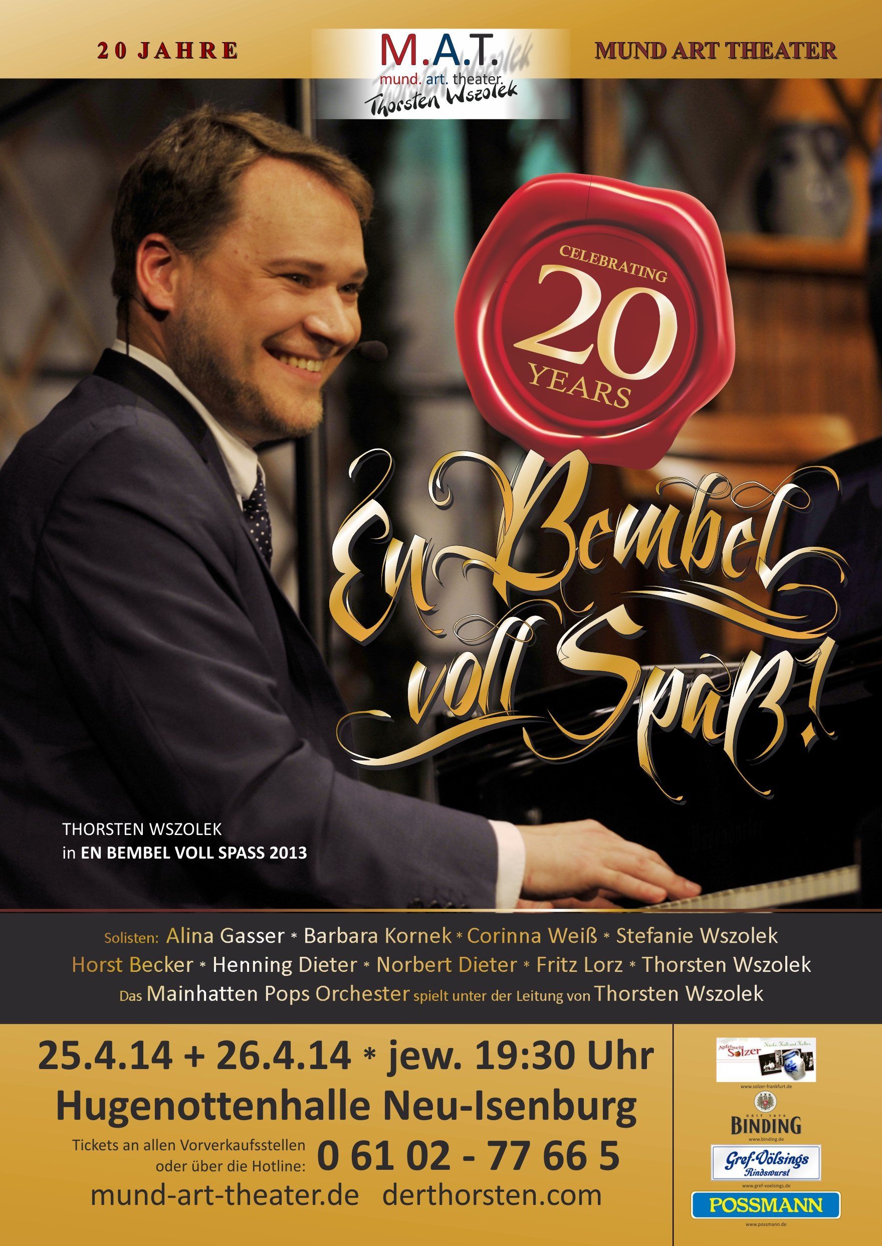 Und dafür eigentlich sich das Format EN BEMBEL VOLL SPASS hervorragend. Das Mund Art Theater - Thorsten Wszolek feiert sich selber in einer etwas festlicheren Form der gewöhnlichen "Bembel"-Produktionen und bereichert das Programm mit Filmeinspielern, die dem Publikum die komplette Bandbreite aus 20 Jahren Theater- und Konzertarbeit darbieten.