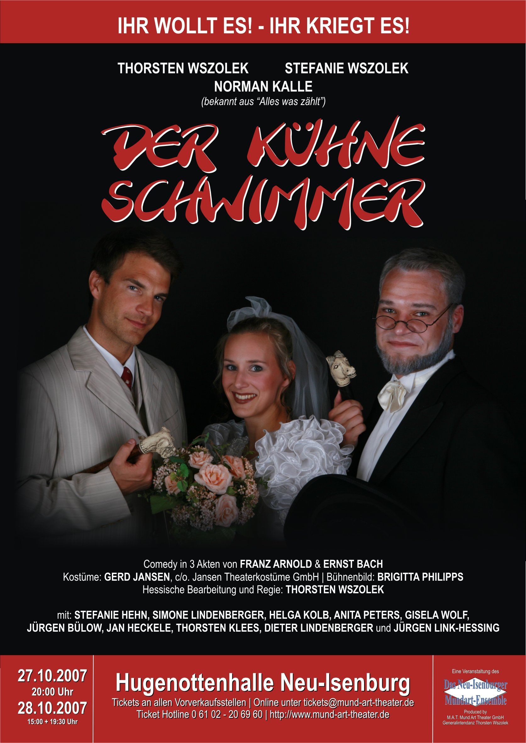 Seinen ersten Theaterauftritt überhaupt hat Norman Kalle im Oktober 2007 bei der Premiere des Arnold-und-Bach-Stücks DER KÜHNE SCHWIMMER, in dem er quasi neben der ersten Riege des Mund Art Theaters agieren kann. Die alten Hasen rund um Wszolek wie Jürgen Bülow, Gisela Wolf, Jürgen Link-Hessing und Helga Kolb tragen den Theater-Newcomer durch die Produktion, und es entsteht eine Art "Freundschaft fürs Leben".