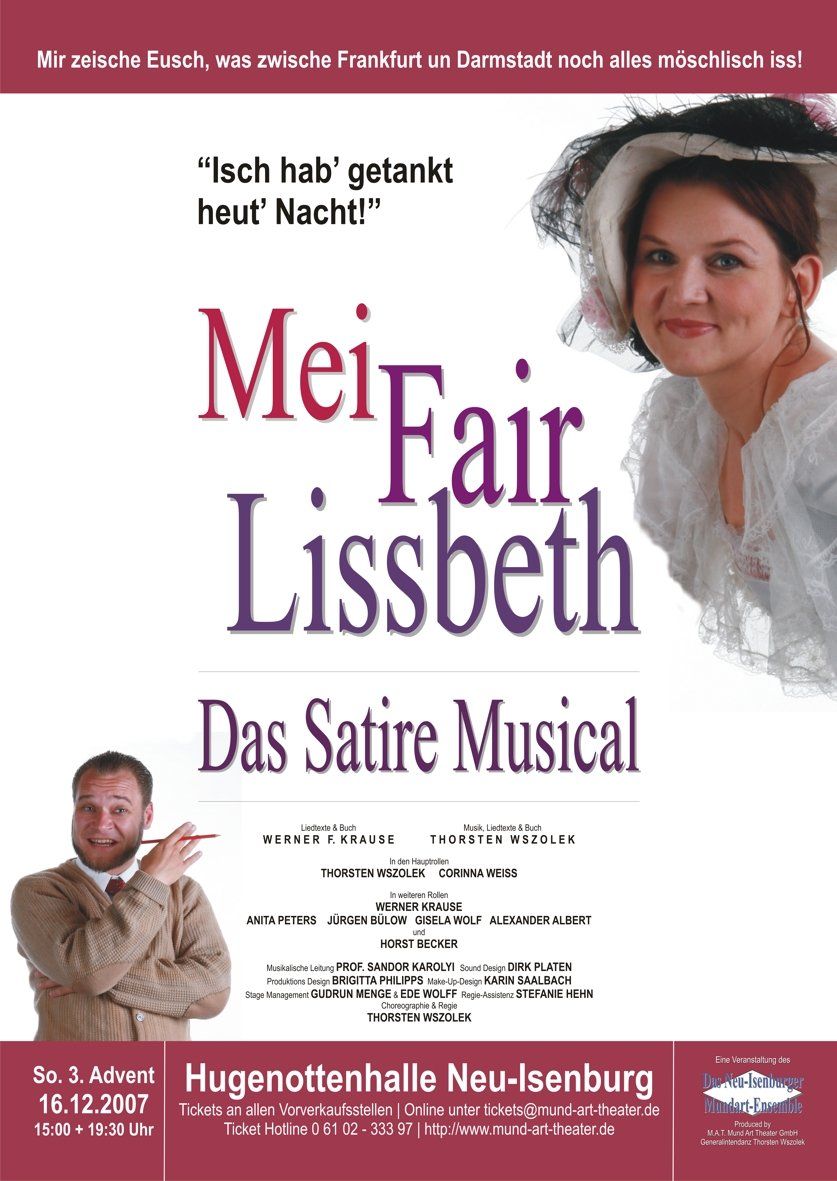 Ab November geht die bereits 2. Revival-Produktion des M.A.T.-Klassikers MEI FAIR LISSBETH on Tour und gastiert als Ablöse für DIE MUNDART WEIHNACHTSGESCHICHTE am vierten Advent für zwei Vorstellungen in der Hugenottenhalle.