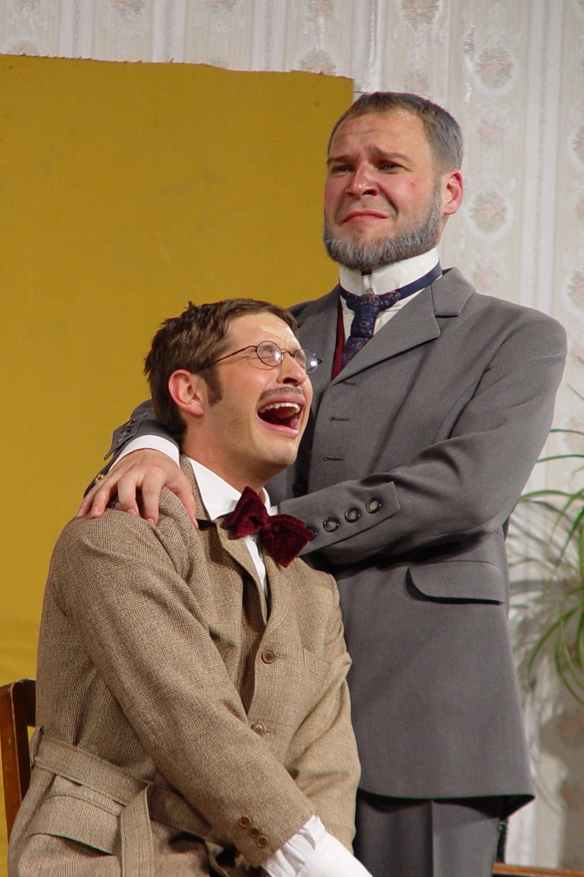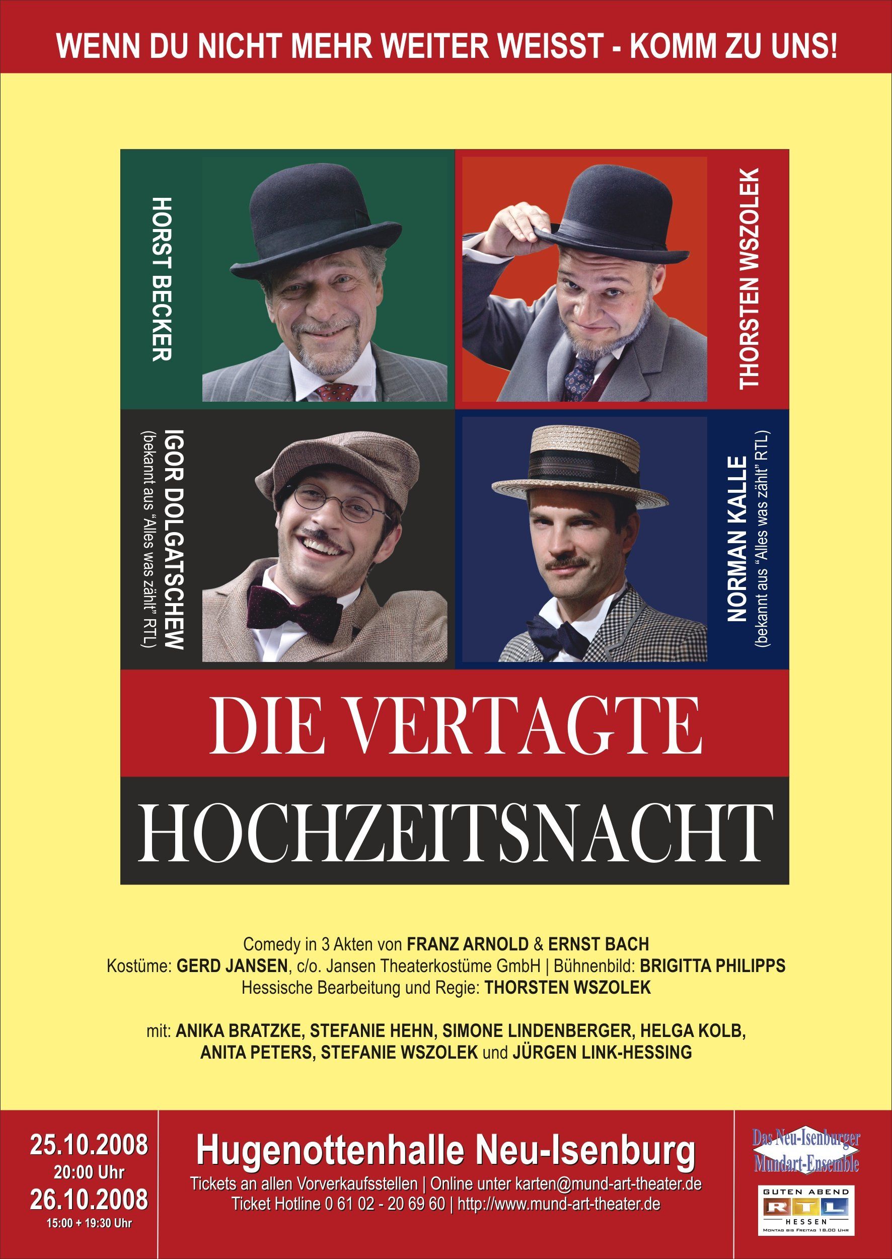 Mittlerweile fast schon zur Tradition geworden eröffnet das M.A.T. seine 15. Saison mit der Arnold-Bach-Comedy DIE VERTAGTE HOCHZEITSNACHT, in der besonders Igor Dolgatschew als Depp-Schwiegersohn "Dr. Zerpedeus" -erstmals Hessisch sprechend!- das Publikum zu Heiterkeitsstürmen hinreißt.