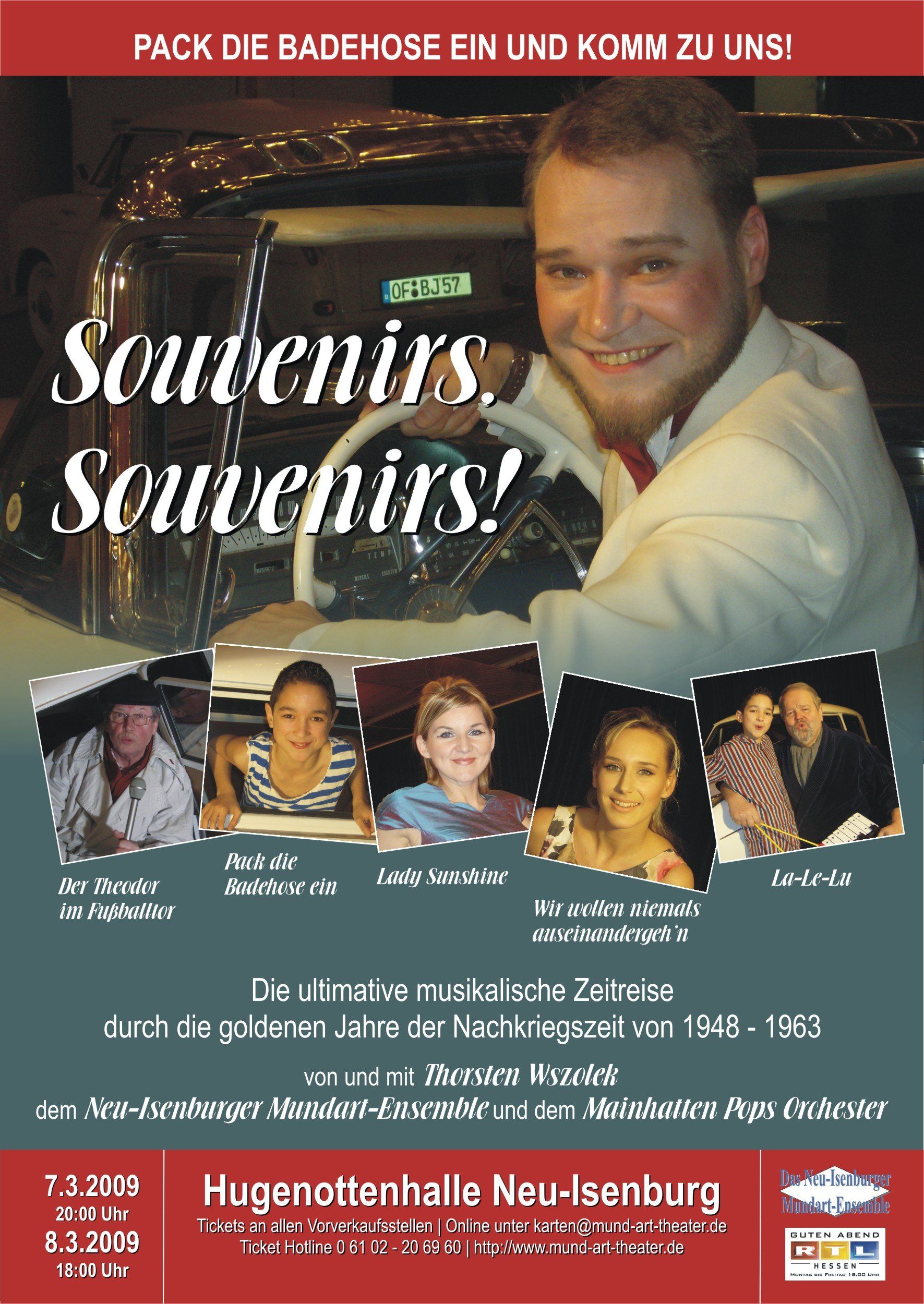 Die Nachfrage nach einer CD der Show ist so groß, dass das M.A.T in den Folgemonaten beginnt, den Soundtrack mit den Höhenpunkten aus SOUVENIRS, SOUVENIRS! aufzunehmen. Zu diesem Zwecks spielen die Streicher in voller Besetzung (in der Bühnenfassung wurde aus Platz- und Kostengründen nur ein Streich-Quartett verwendet), und zum Chor kommen die vier jungen Sänger: Sabina Ponseck, Stefanie Muhl, Markus Desoi und Simon Schumann, die ab 2010 alleine als Mainhatten Poppers fungieren.