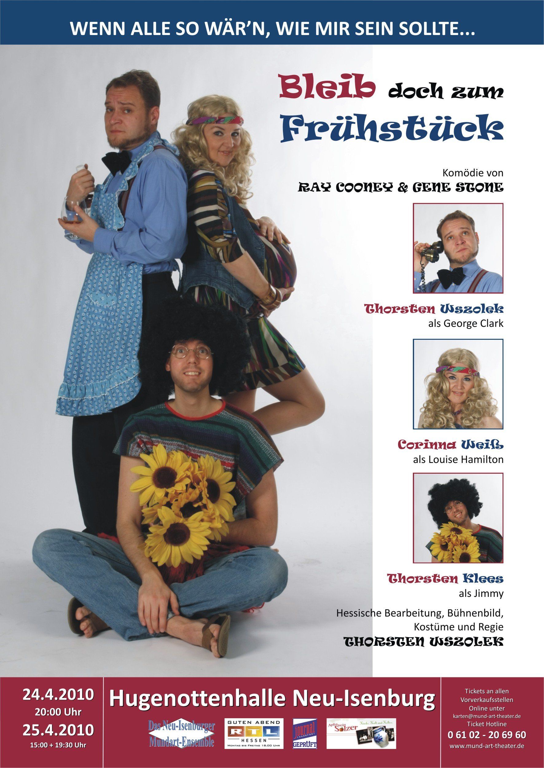 Unter dem Motto "Klein aber fein" spielt das M.A.T. mit der Boulevardkomödie BLEIB DOCH ZUM FRÜHSTÜCK von Gene Stone und Ray Cooney erstmals ein 3-Personen-Stück. Die Gründungsmitglieder Thorsten Wszolek, Corinna Weiß und Thorsten Klees laufen zu Hochtouren auf und beweisen, dass auch die spitzfindigen und leisen Töne das Publikum zum Schmunzeln und Lachen bringen.