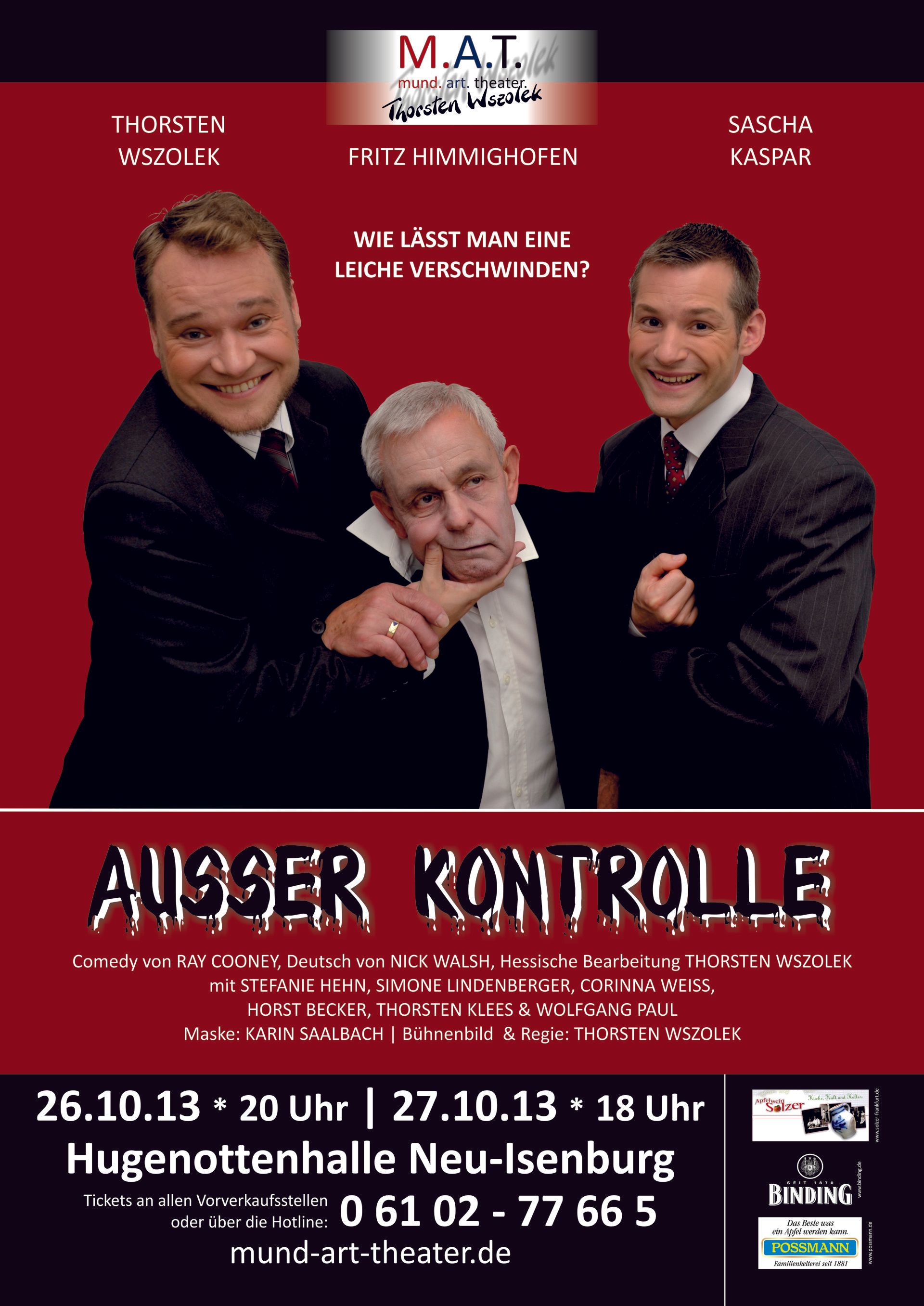 Nicht viele Boulevard-Komödien sind Serien oder haben Fortsetzungen. WENN SCHON - DENN SCHON! aus der Feder von Komödien-Papst Ray Cooney hat aber einen zweiten Teil: AUSSER KONTROLLE. Beide Stücke haben wir schon mehrfach gespielt. Nun das erste Mal in unmittelbarer Folge. WENN SCHON - DENN SCHON! lief zur Saisoneröffnung 2012-2013, AUSSER KONTROLLE eröffnet die Spielzeit 2013-2014.