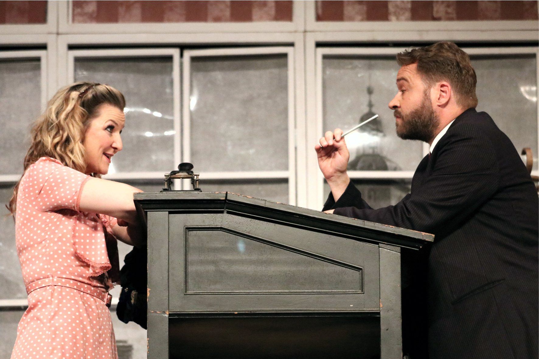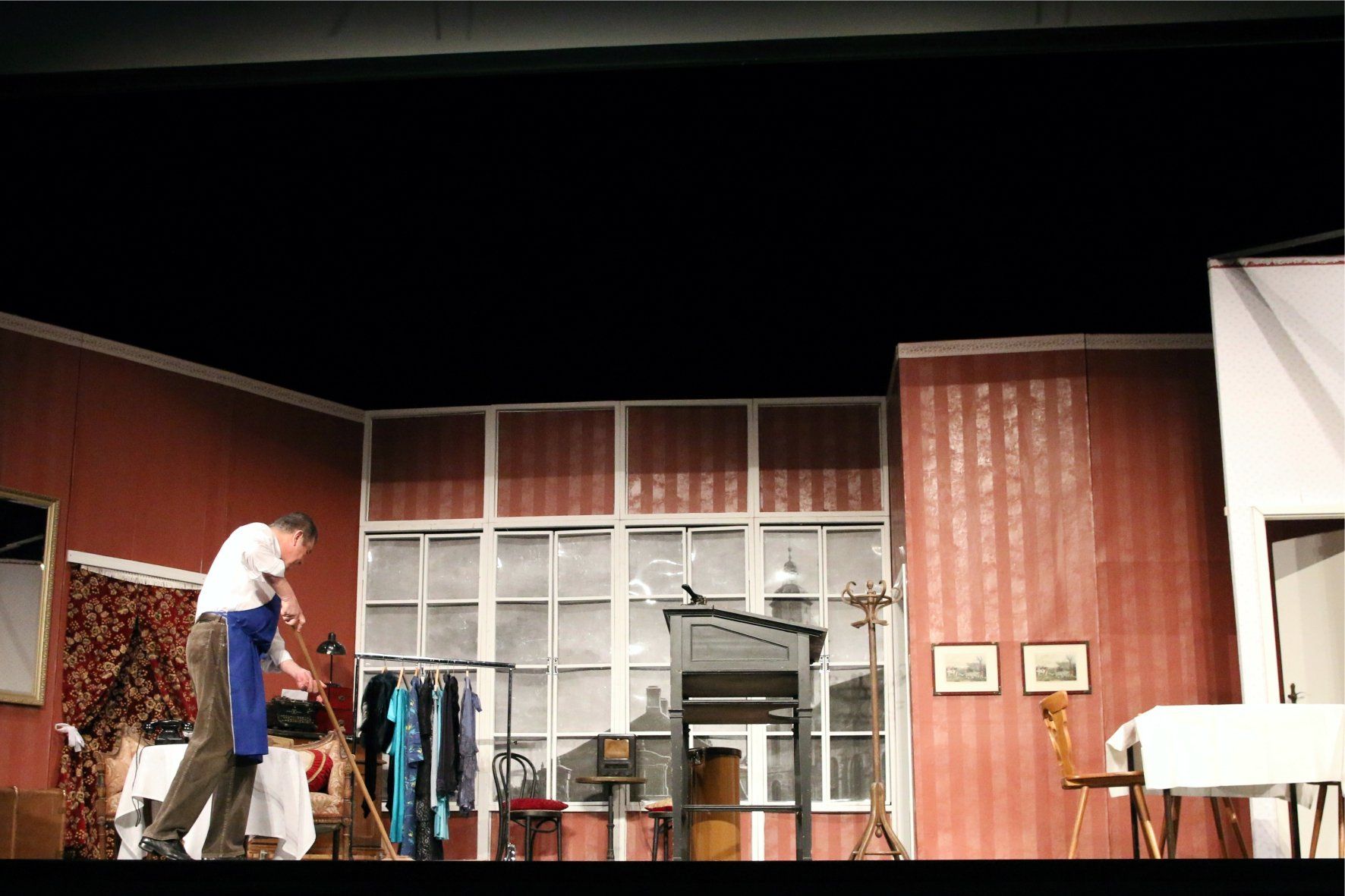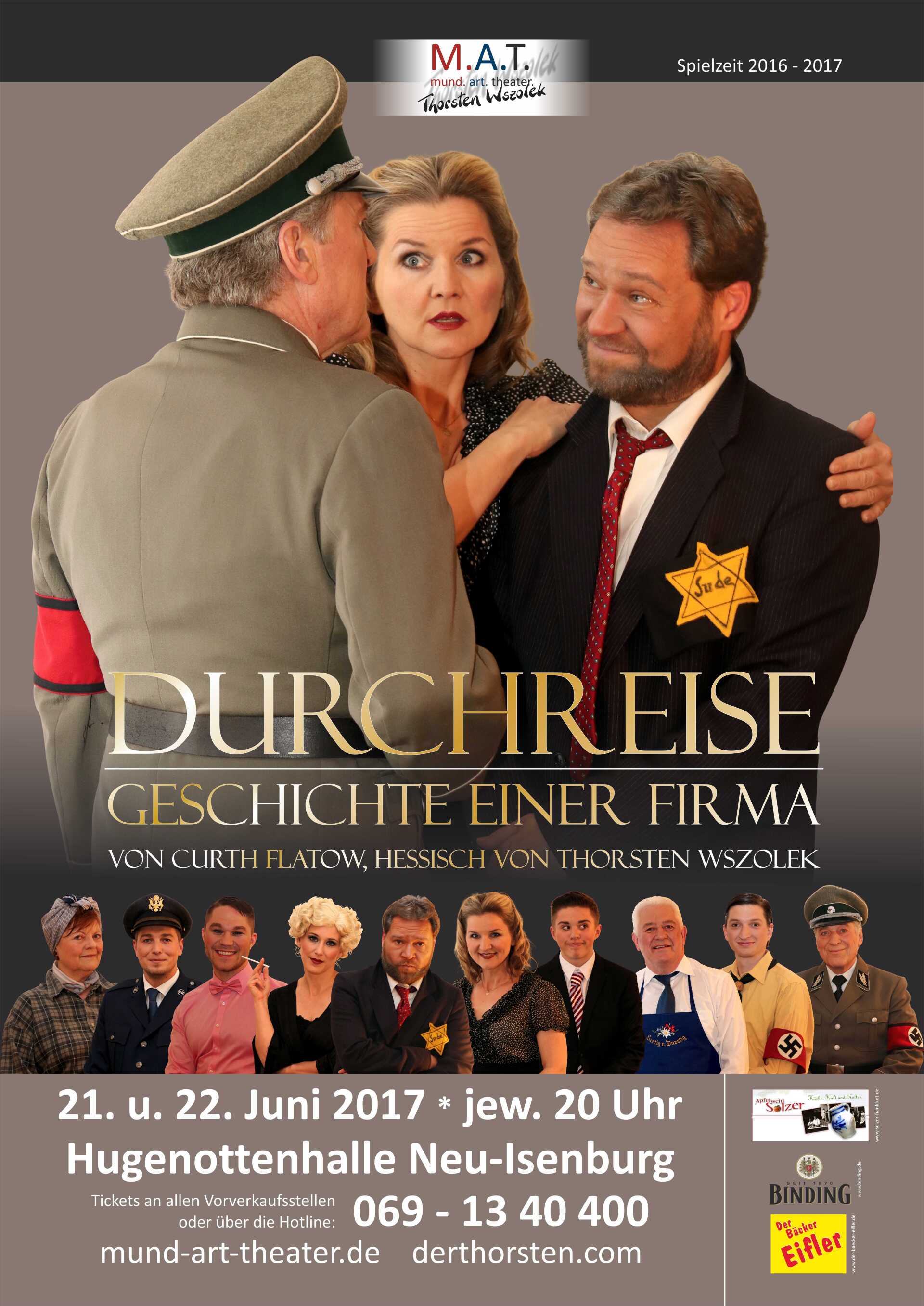 "Durchreise" nennt man die Zeitspanne, in der die Frankfurter Konfektionsfirmen ihre Kollektionen zeigen. Eine solche Firma steht ab 1931 im Mittelpunkt des Stücks und sein langjähriger Besitzer Max Salomon (Thorsten Wszolek).